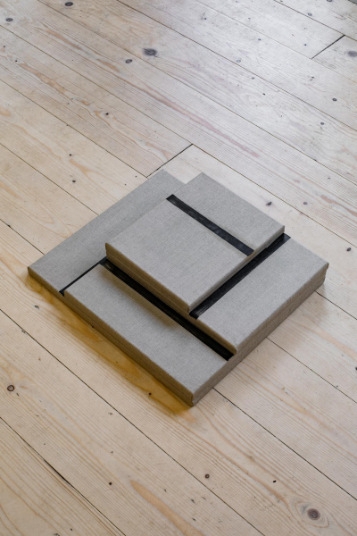 Leaves that have been blown about under trees and between stones look interesting and should not be disturbed, stone and oil on linen, dimensions variable, 2019